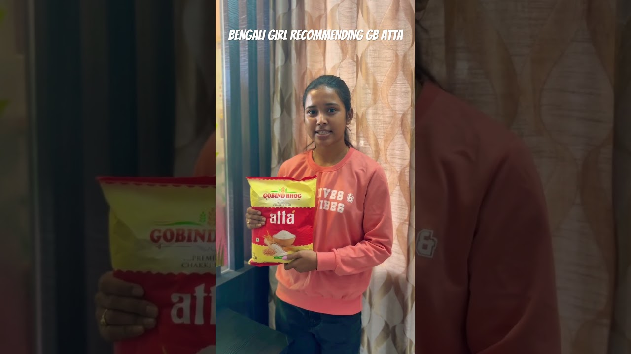 Bengali Girl, conveying how satisfied she is with the taste of Gobind Bhog (Chakki Fresh Atta)